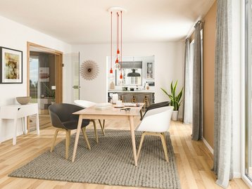 Das Landhaus 142 besticht durch sein ländliches Flair genauso wie durch seine zeitlose Eleganz. Hier findet garantiert jeder seinen Platz. Die großzügig geschnittenen, lichtdurchfluteten Räume auf beiden Ebenen warten nur noch auf Ihre Gestaltungsideen. Zu den Mahlzeiten trifft sich die ganze Familie in der Küche und auch das Wohnzimmer eignet sich hervorragend für gemütliche Stunden oder fröhliches Beisammensein.
