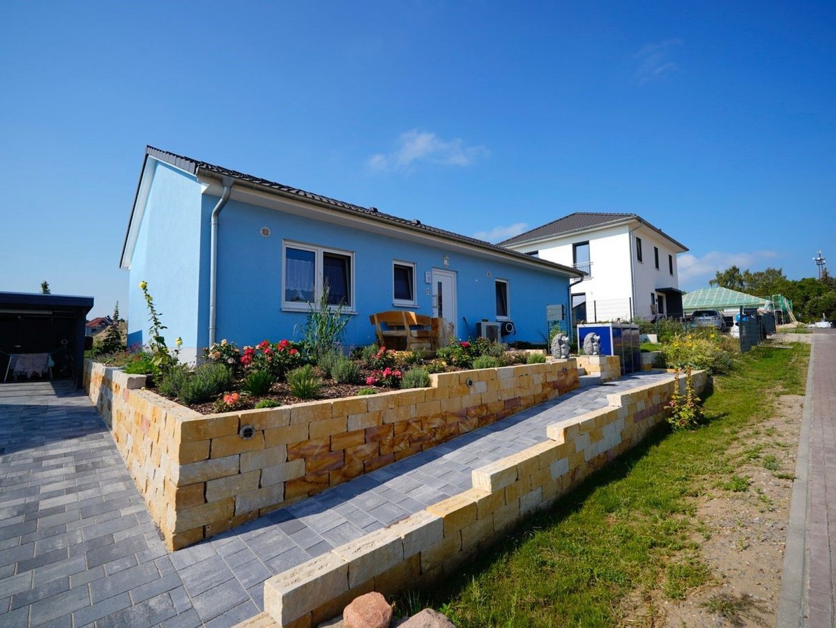 Im März diesen Jahres bezogen Regine und Herbert aus Marburg nach 7 monatiger Bauzeit, als eine der ersten Familien, ihren wunderschönen, blauen Bungalow 100 im Ahornviertel in Bad Belzig.