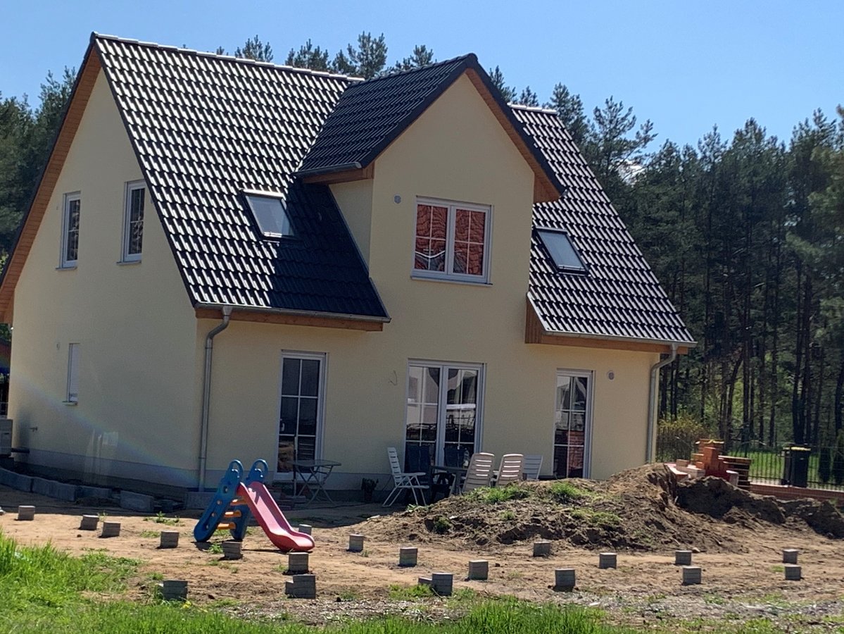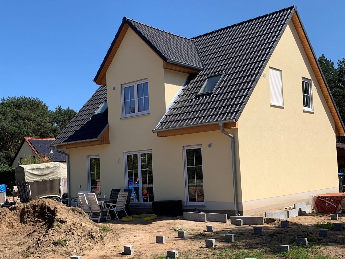 Von Anfang an konnten Franziska, Benjamin und ihr kleiner Sohn Karl hautnah dabei sein und jeden Tag schauen, wie ihr Flair 125 von der Haus- und Industrieservice GmbH Wittenberg in Borkheide gebaut wird.